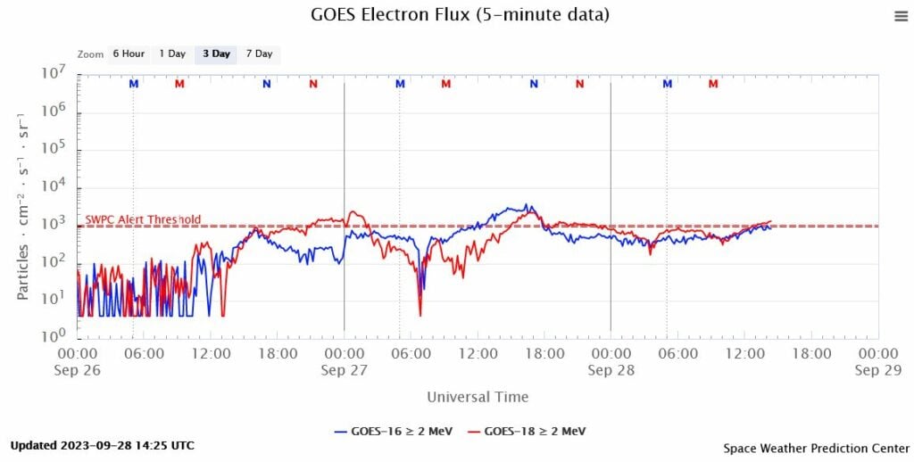 De elektronen kwamen dinsdag 26-9 rond 18:00 uur rond elektronenstorm en bleef de dagen daarna om en nabij zonnestorm, dus erg hoog waardoor je een hoogfrequente elektrische energie kan ervaren. De verwachting is dat dit voor vrijdag ook zo zal zijn.