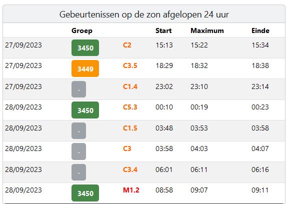 Afb: Dit zijn de X-ray zonnevlammen. Voor onze tijd tel +2 uur op bij de tijd.