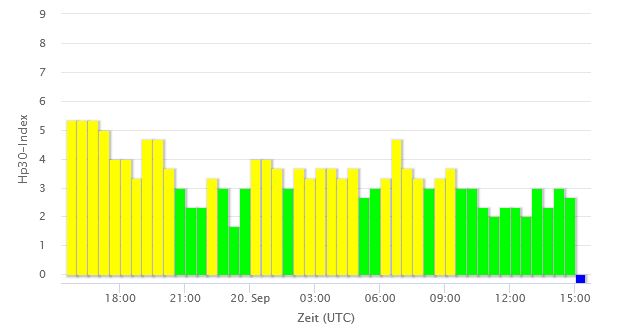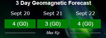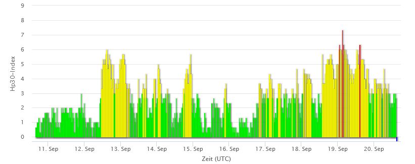 KORTE UITLEG ALLE VERSTORENDE FACTOREN: Het ziet er naar uit dat de grote zonnestorm toch gisteren (dinsdag) is geweest en dat we nu de komende dagen tot ongeveer zaterdag nog te maken hebben met de resten van de zonnestorm met hogere zonnewind snelheden (rond 500 km/sec.) en ook nog milde periode met situaties tegen zonnestorm aan met kp-4, zoals afgelopen nacht. Er was nog kort een situatie tegen Kp-5 aan tussen 8:30 en 9:00 uur. De zonnestorm was in de nacht van dinsdag 19-9 zelfs G3 met een kp-7 en dat is echt heel intens. Ook apparaten gaan kapot bij deze hoge zonnestormen kp-7. Zie voor meer informatie hieronder bij de grafieken.