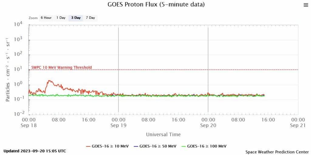 Afb: Dit is een weergave van de metingen van protonen van woensdag 20-9. Voor onze tijd tel +2 uur op bij de tijd.