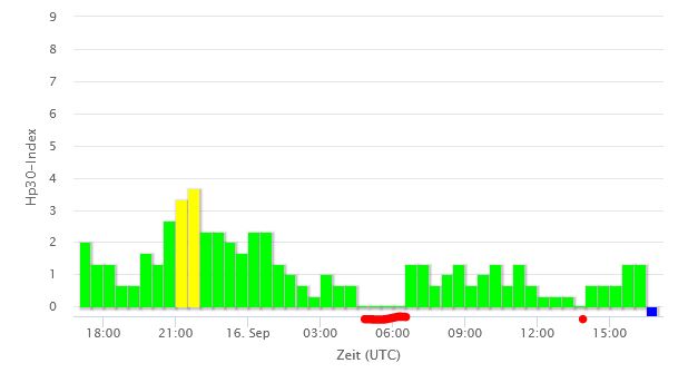 Afb: Dit is de dagelijkse weergave van de reactie van de beschermende magnetosfeer van de aarde op de zonnewind of andere verstoringen en dit geeft zonnestorm weer. Voor onze tijd tel +2 uur op bij de tijd.