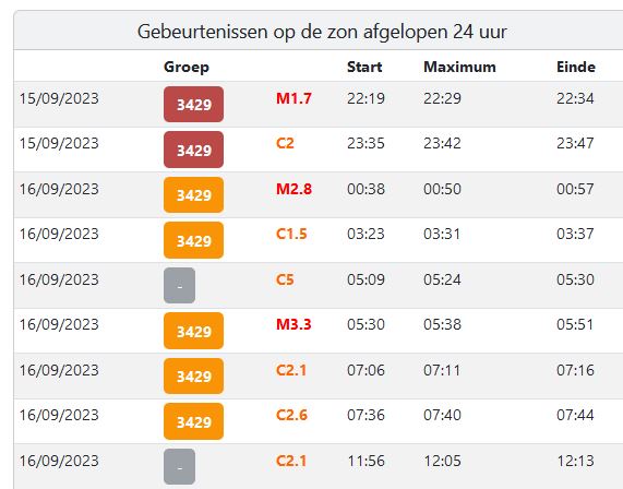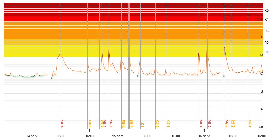 Afb: Dit zijn de X-ray zonnevlammen. Voor onze tijd tel +2 uur op bij de tijd.