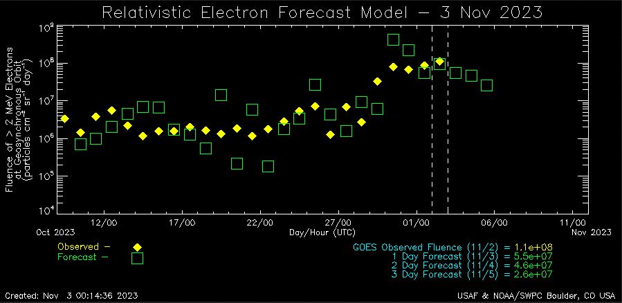 Afb: Dit is het vooruitzicht voor de komende dagen voor de elektronen in de ionensfeer.