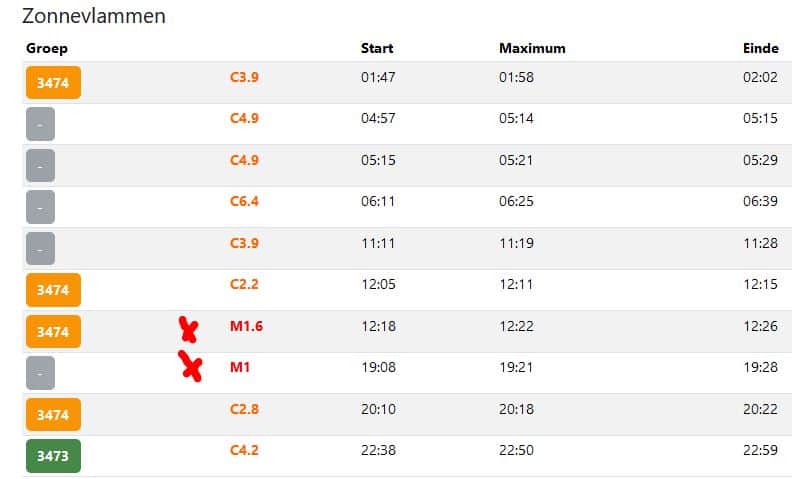 Afb: Dit zijn de X-ray zonnevlammen. Voor onze tijd tel +1 uur op bij de tijd.