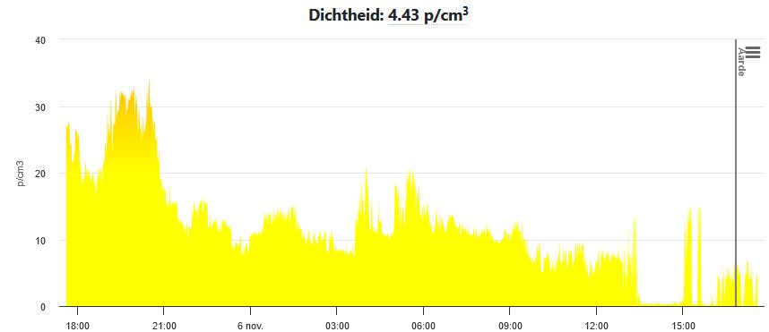 Afb: Dit is een weergave van de zonnewind dichtheid. Voor onze tijd tel +1 uur op bij de tijd.