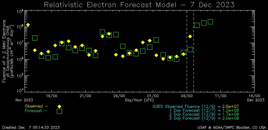 Afb: Dit is het vooruitzicht voor de komende dagen voor de elektronen in de ionensfeer.
