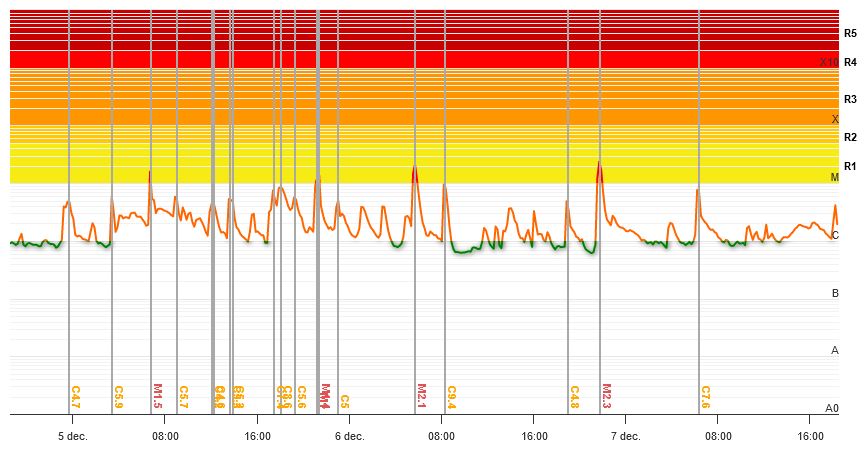 Afb: dit is de weergave van X-ray zonnevlammen.