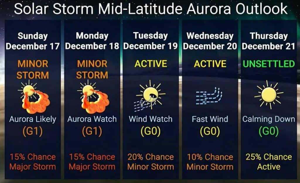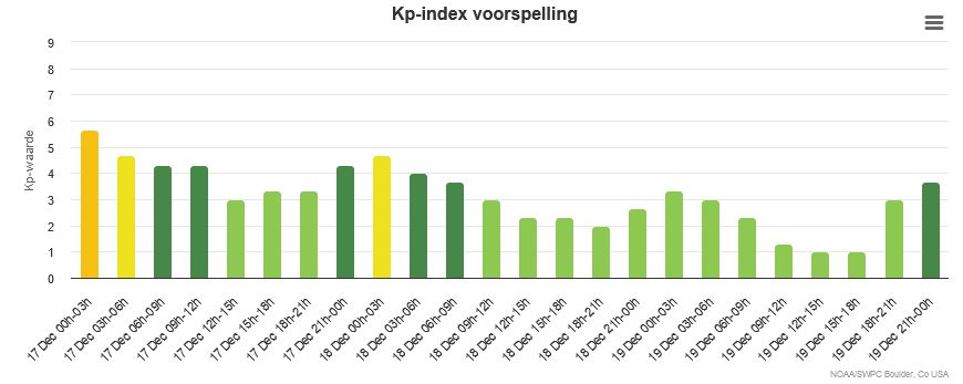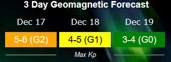 KORTE UITLEG ACTUELE SITUATIE VOOR DE KOMENDE DAGEN: Voor de komende nacht wordt wel weer een kort periode met zonnestorm verwacht vanaf middernacht en waarschijnlijk rond kp-4, milder dan die van zondag 17-12.