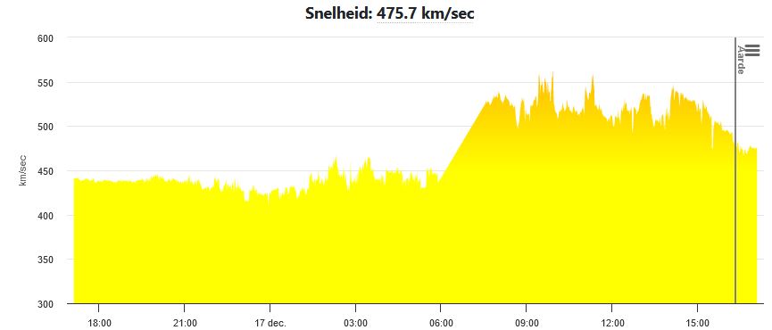 Afb: dit is de weergave van de zonnewind snelheid. Tijd + 1 uur voor onze tijd.
