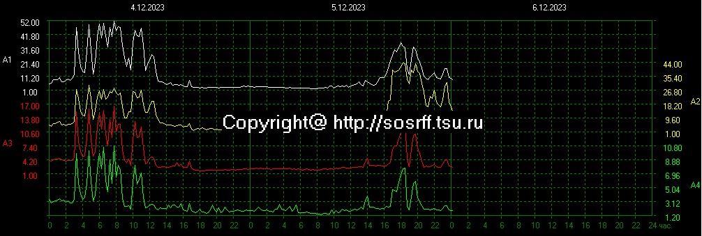 Afb: dit zijn de Schumannresonantie amplitude en geeft de intensiteit aan van de SR activiteit en metingen zijn gedaan in Rusland. De tijd is Minsk en dus minus 6 uur om onze tijd te zien.