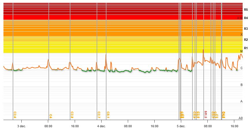 Afb: De dreiging voor zonnevlammen van DINSDAG 5-12