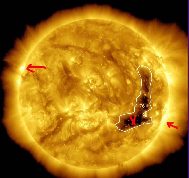 KORTE UITLEG ACTUELE SITUATIE SUPER GAT CORONA: Het super grote gat in de corona van de Zon die pal op de aarde gericht stond, staat nu op de rand van de Zon. Het de stroom van zonnewind uit dit grote gat in de corona van de Zon die nu verhoogde zonnewind veroorzaakt op dit moment op aarde. En dat gaat nog ongeveer 3 dagen door, dus we houden (zeer waarschijnlijk) nog een dag of 3 hogere zonnewind snelheid. Buiten de symptomen van hoge fluittonen/ruis in oren en hoofd geeft zo’n stroom zonnewind ook nog extra symptomen, zoals we die met zonnestorm ook ervaren. Kijk de video hieronder voor uitleg hierover.
