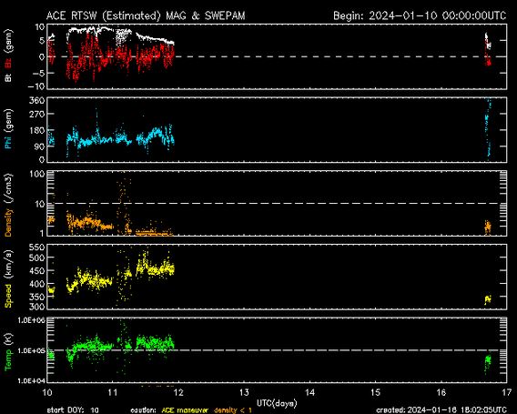 KORT UITLEG ACTUELE SITUATIE ZONNEWIND & KOSMISCHE STRALINGSALERT: Zonnewind rond normale of lagere waarden en dus mogelijk wel af en toe kosmische stralingsalerts en kosmische invloeden die makkelijker de aardse atmosfeer in kunnen komen, omdat de beschermende magnetosfeer minder sterk is. Dus de energieën kunnen af en toe pittig hoog zijn en dat betekent mogelijk minder makkelijk in je aarde verbinding kunnen blijven (koude voeten). Helaas was de ACE satelliet al vanaf vrijdag 12-1 offline. Ik heb geen idee waarom, maar daardoor was het niet zichtbaar of er hoge X-ray pieken waren, omdat de andere weergave van zonnewind deze pieken uitfilteren. Tijdens het schrijven van deze update kwam de ACE satelliet plotseling weer tot leven rond 17:00 uur op dinsdag 16-1. Dus de komende week hopelijk weer wel een weergave voor hoge X-ray pieken, want die kunnen zeker aan de orde zijn met deze zwakke zonnewind. De zonnewind is trouwens al een paar dagen zeer onrustig met pieken die bewegen tussen de 400 en 500 km/sec. Die lopen dan plotseling op en net zo plotseling klappen de zonnewind snelheid weer terug. Dit geeft onrust in je energielichaam en in je beleving.