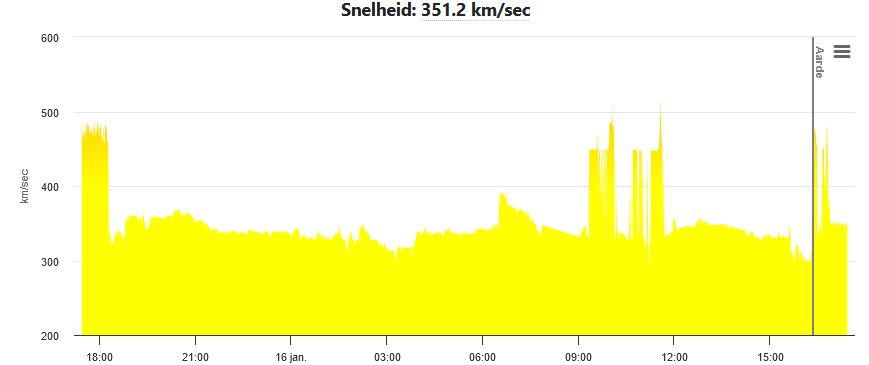 Afb: Dit is de weergave van de zonnewind snelheid.