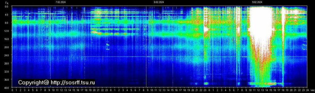 Afb: dit zijn de Schumannresonantie ELF metingen, gemaakt in Rusland. De tijd is Minsk en dus minus 6 uur om onze tijd te zien.