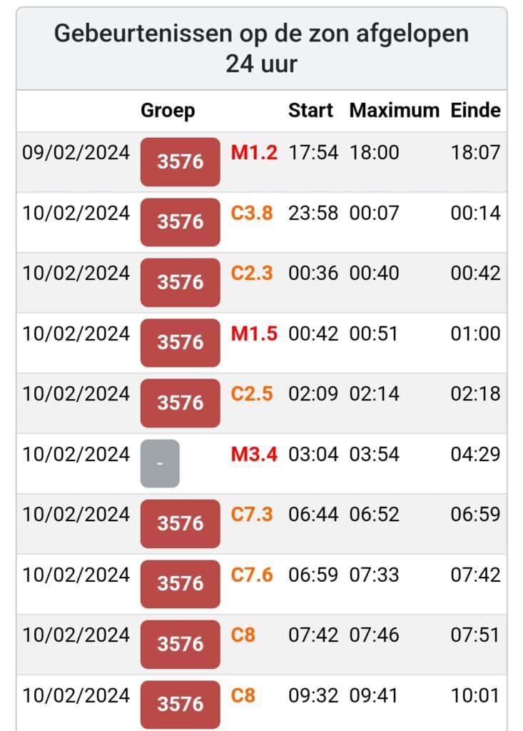 Verwachting: De VERWACHTING is dat met een zeer GROTE ZONNEVLAM ALERT met 60% kans op M-klasse zonnevlammen en 25% kans op X-klasse zonnevlammen en 99% kans op protonenstorm er mogelijk nog meer hoge zonnevlammen gaan komen. Er staat een super grote kluster van zonnevlekken op de aarde gericht AR3576 die hogere C-klasse en ook lage M-klasse zonnevlammen met vooral alleen X-ray licht produceert. Maar de kans op een CME die ook plasma naar de aarde stuurt van dit monster van zonnevlekken is zeer groot.