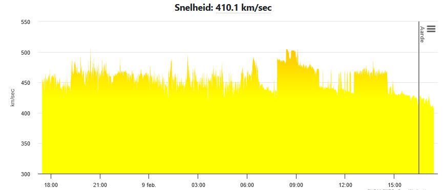 Afb: Dit is de weergave van de zonnewind snelheid.