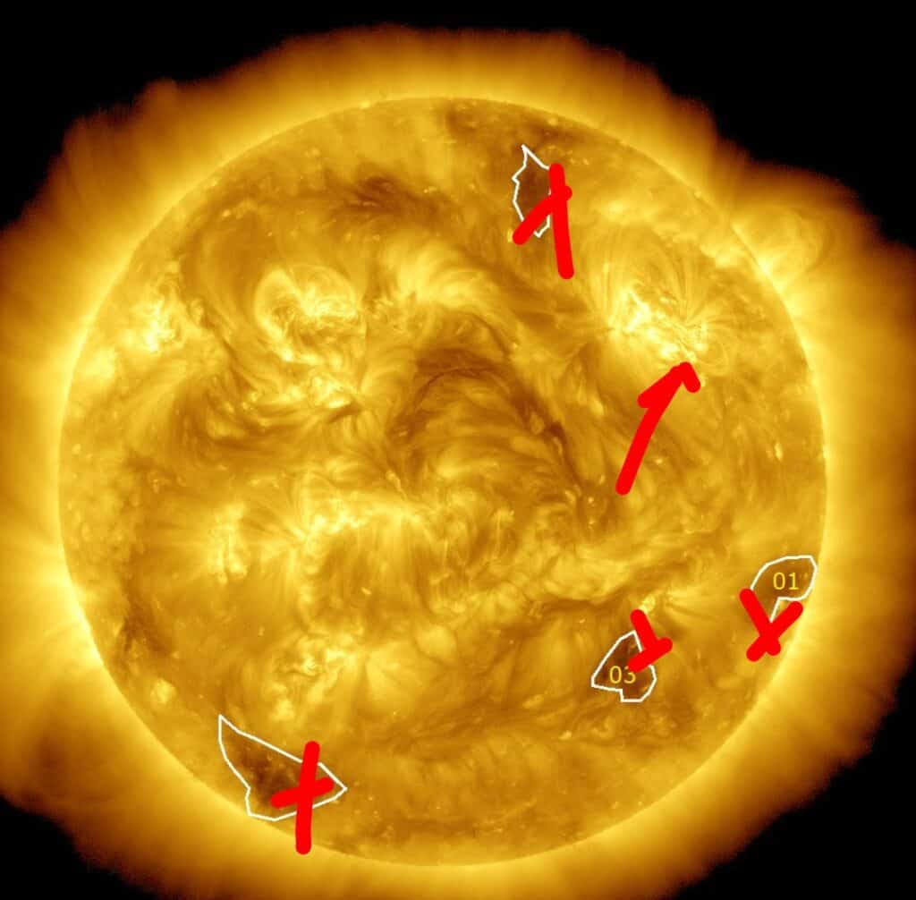 Er staan een paar kleine gaten ik de corona van de Zon op de aarde gericht.