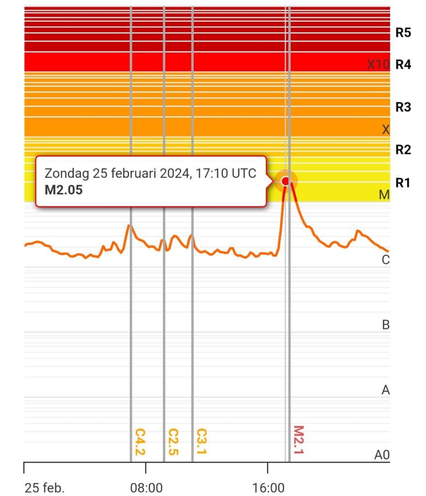 Kort: dinsdag 27-2 zonnestorm, hoge X-ray piek en andere magnetische verbinding met de Zon (HCC) en woensdag 28-2 M-klasse zonnevlam en kleine gaten in de corona van de Zon aarde gericht & GROTE ZONNEVLAM ALERT.