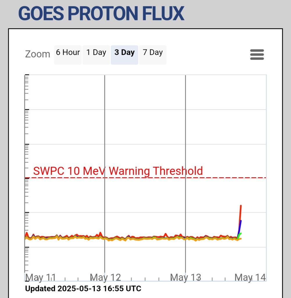 Plotseling om 17:30 uur een zeer hoge zonnevlam. Het is nog niet helder welke zonnevlek hiervoor verantwoordelijk is. Er zijn zeer kleine en weinig zonnevlekken. Het is ongelofelijk rustig op de Zon, dus daarom is dit echt bijzonder. De zonnevlam was aarde gericht, want er ontwikkelde gelijk een protonenstorm vanaf 18:30 uur.