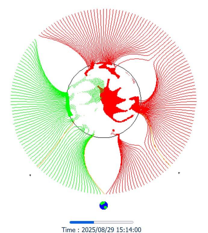 De Heliospheric Currentsheet Crossing (HCC) is vrijdag 29-8 weer actief en is vermoedelijk nog ongeveer 1,5 week of langer aan de orde.