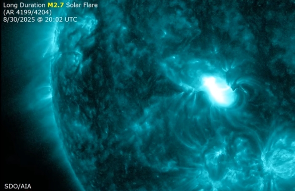 Afb: Dit zijn de zonnestormen van zaterdag 30-8 en waar die grote M-2.7 dus bij zat die de zonnestorm onze richting op stuwde.