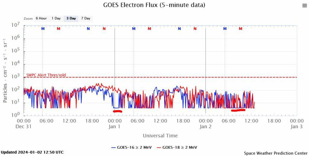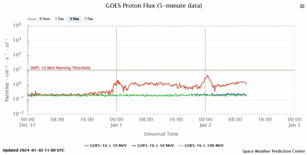 Afb: dit is de weergave van X-ray zonnevlammen van maandag 1-1-2024