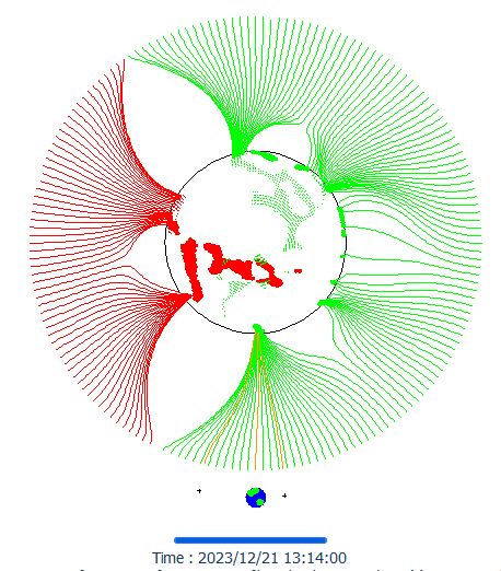 Afb: We zien dat het groene vlak opnieuw is versprongen en niet volgens het normale patroon verloopt. Als het zo doorgaat, dan gaat de switch naar de ‘normale’ magnetische verbinding waarschijnlijk al rond de 22ste gebeuren. Of misschien wel eerder. De situatie is dus erg onstabiel.