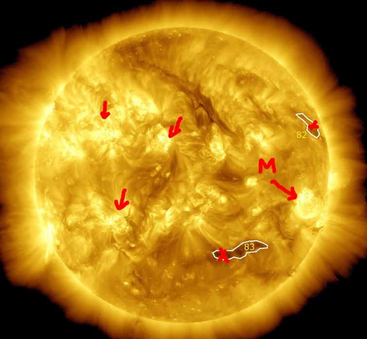 Er staan kleine gaten in de corona van de Zon op de aarde gericht, maar geen extreem grote gaten (symptomen: hoge fluittonen/ruis in oren en hoofd en symptomen die lijken op die van zonnestormen).