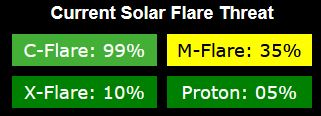 KORTE UITLEG VERWACHTINGEN VOOR DE ZONNEVLAMMEN: De verwachting is dat er de komende week nog wel kans is op grote zonnevlammen met zeker nog 35% kans op M-klasse en 5% kans op X-klasse zonnevlammen. Dus er blijft een GROTE ZONNEVLAM ALERT actief.
