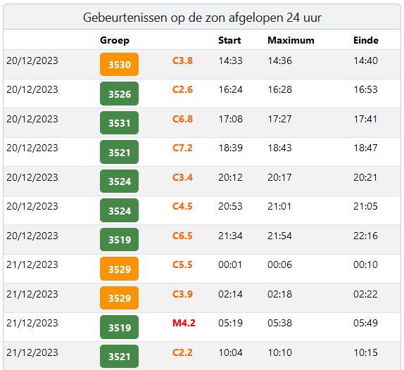 Afb: dit is de weergave van zonnevlammen van donderdag 21-12.