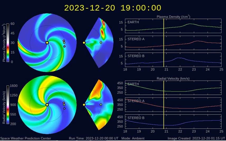 De magnetische verbinding tussen de aarde en de Zon was zeer instabiel de afgelopen dagen (dat heeft ook te maken met de grote uitbarsting op de Zon met de X-2.87 zonnevlam en andere grote zonnevlammen) en ging zaterdag 16-12 rond 4:00 uur weer naar de ‘ongewone’ magnetische verbinding (HCC- groen). Deze overgangen noemen we een Heliospheric Currentsheet Crossing (HCC). De situatie is erg instabiel en switch steeds onverwacht en veel vaker als normaal is. De laatste maanden is de cyclus best wel flink verstoord en dat leg ik uit in deze special, dat dit komt door de poolshift die de Zon aan het maken is. De verwachting is dat dit ongeveer een week zo zal blijven tot ongeveer de kerst op maandag 24-12.