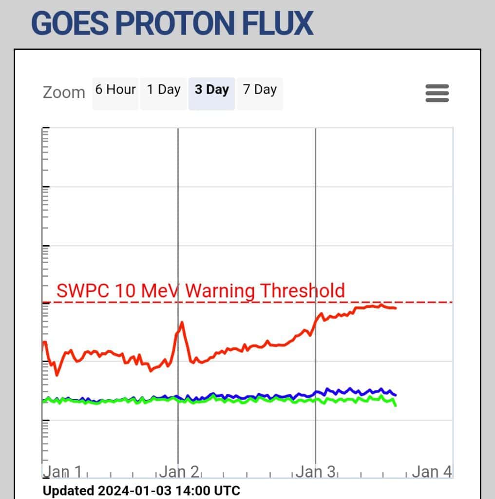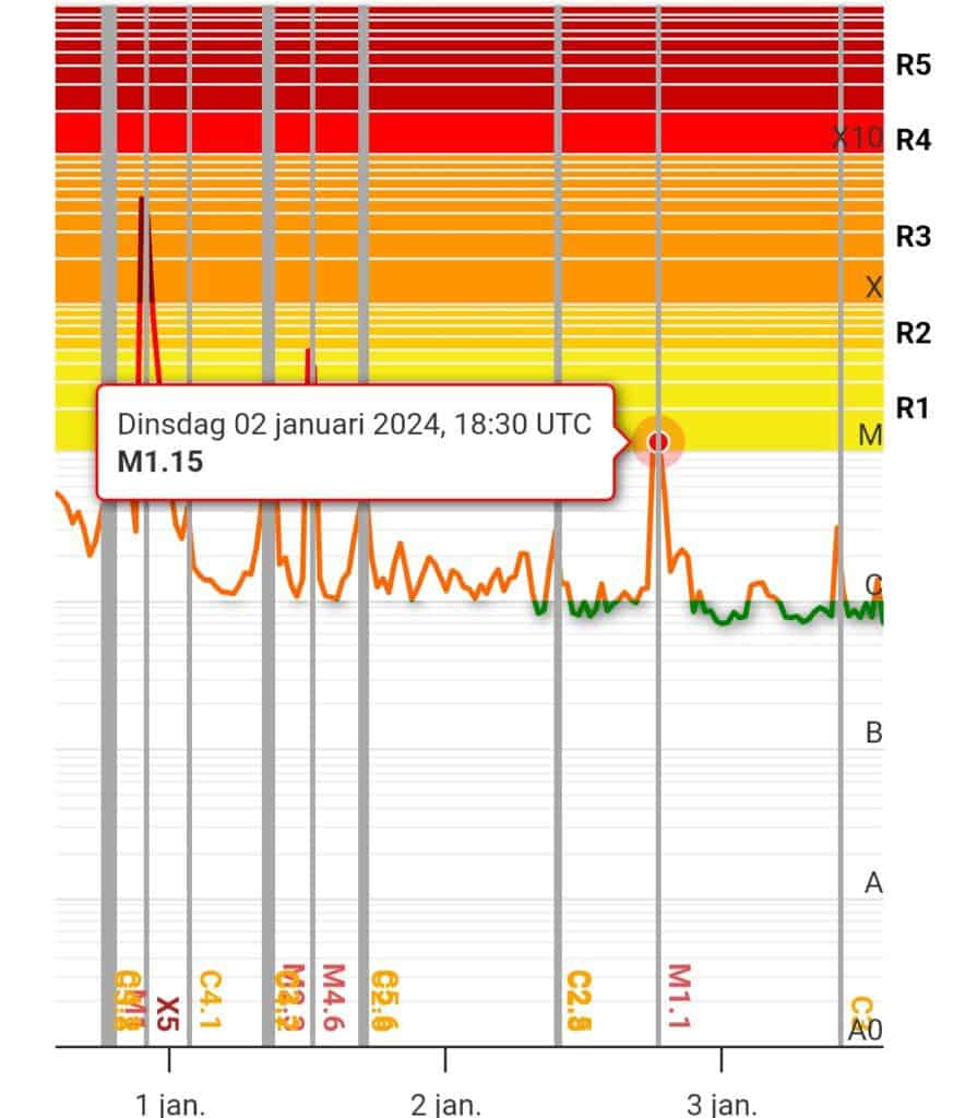 Afb: dit is de weergave van X-ray zonnevlammen t/m dinsdag 2-1-2024