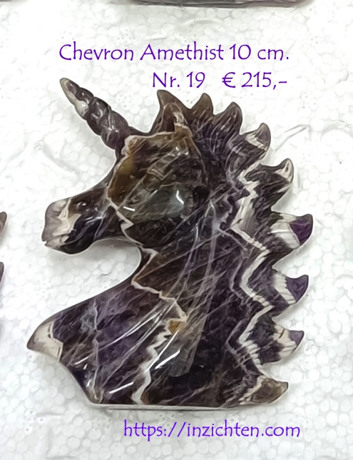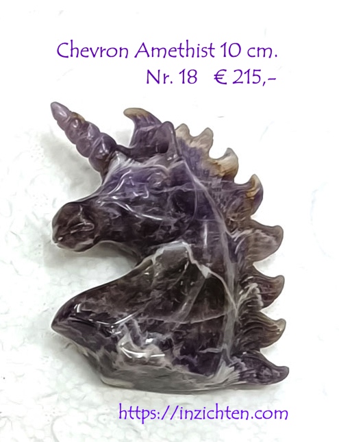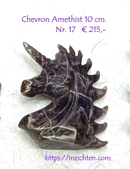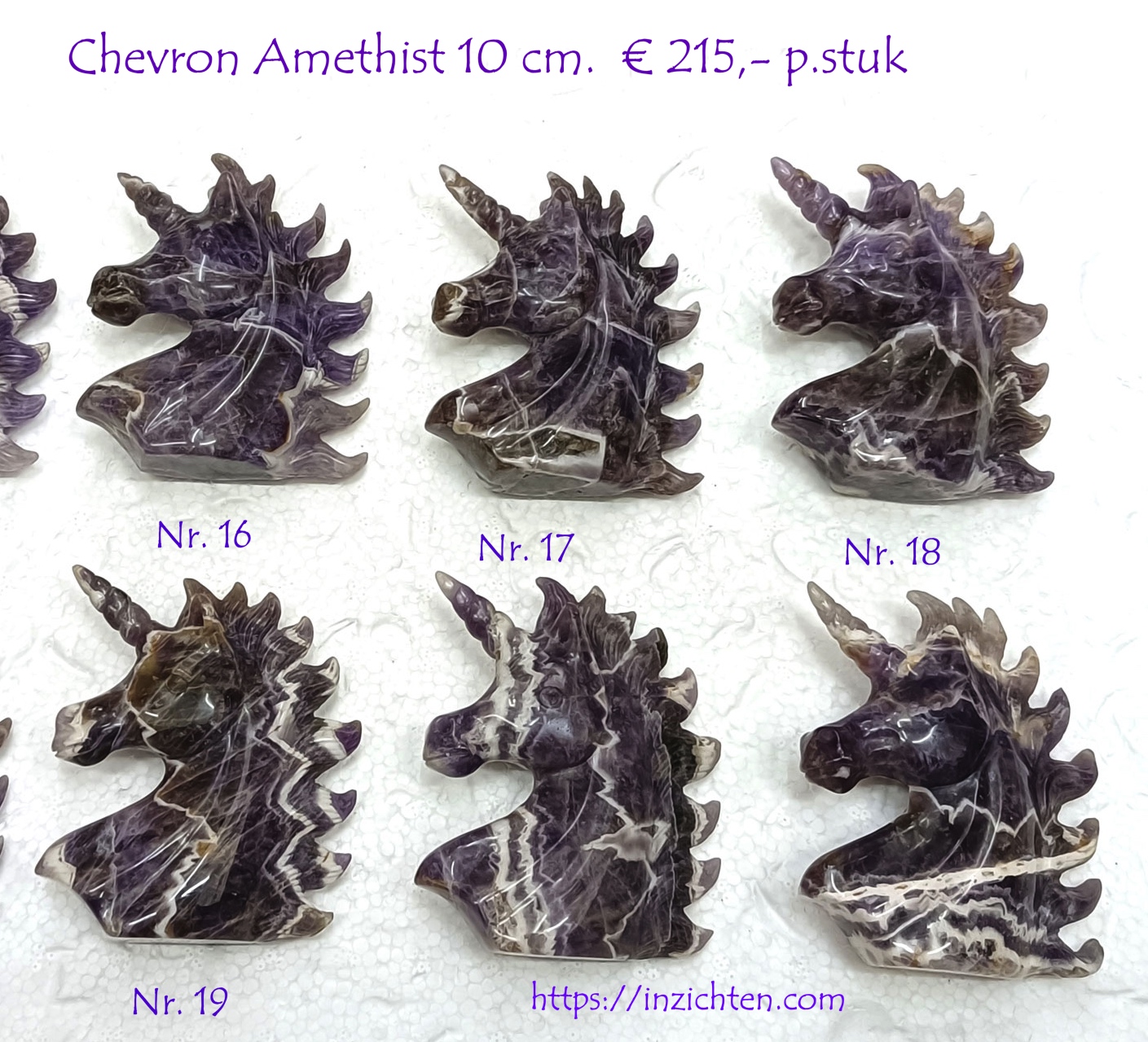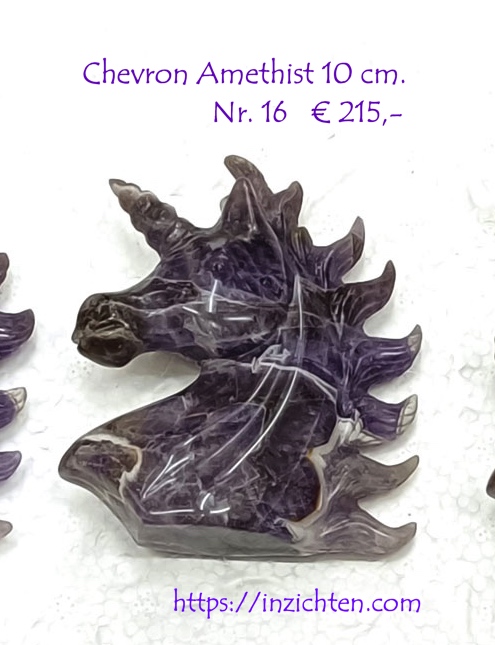 - Nr. 16 Chevron Amethist 10 cm € 215,- Zelfde als Amethist, maar geeft meer doorbraken en houvast is het niet tastbare. Maakt dimensies stevig. Lees meer elders op de website over de Chevron Amethist.